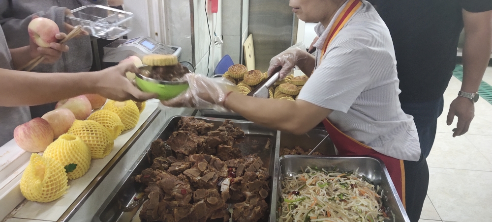 豐盛的午餐,大家一起品月餅,吃鮮桃。